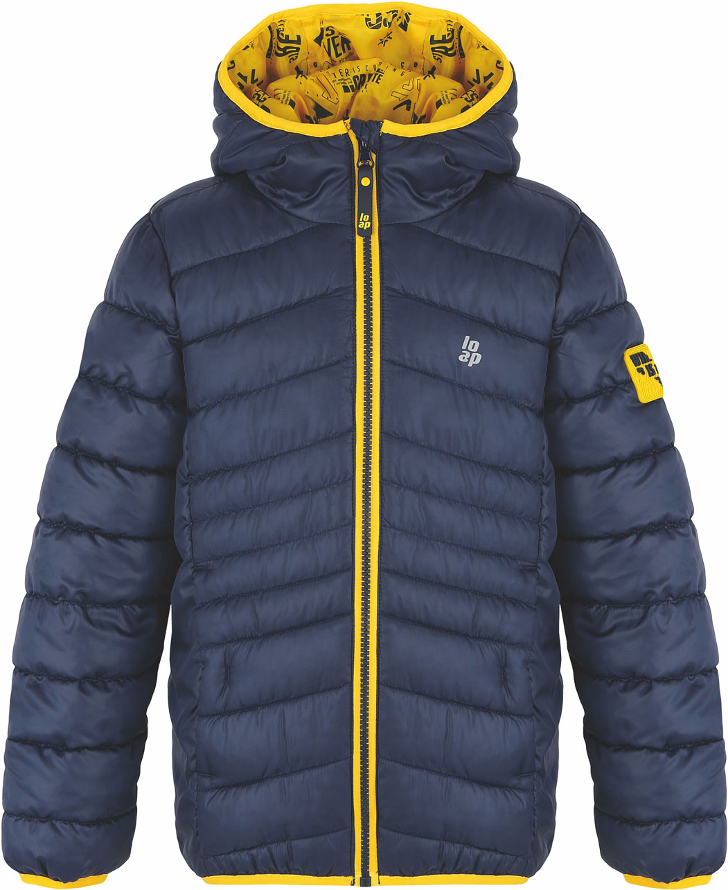 Prošívaná dětská zimní bunda Loap INTERMO v délce do pasu zahřeje díky vodoodpudivé tkanině STORMEX s kvalitním zátěrem DRYTECH, příjemné podšívce a výplni POLYTHERM z dutých vláken, která se rychle přizpůsobí tělu a zahřejí ho. Lehká zimní bunda s kapucí je ušita v klasickém střihu. Má pevnou kapuci s elastickým lemem a uvnitř má celopotištěnou podšívku. Na levém rukávu bundu zdobí stejný motiv jako na podšívce. Bunda drží hezky na těle díky elastické pásce na rukávech a elastickému spodnímu okraji. Kostěný zip má na horním konci praktické krytí, které chrání bradu před poraněním a chladem jezdce. Tato zateplená dětská zimní bunda se dvěma kapsami na zip zahřeje ve sněhové vánici, v dešti i nepříjemném studeném větru. Je ideální od podzimu do jara na každodenní nošení do školy a do města, na cestování i další volnočasové aktivity.