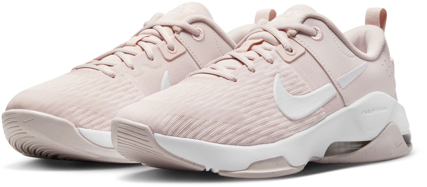 Tenhle design podporuje zvedání těžkých závaží, výbušné pohyby a hrdé výkřiky po cvičení. Jednotka Zoom Air dobře pruží a vylepšená přední část boty vytváří více objemu, takže se bota lépe přizpůsobí. Systém šněrování ve střední části zlepšuje oporu, aniž by nohu úplně fixoval na místě. Plochá podrážka zlepšuje stabilitu na povrchu tělocvičny.