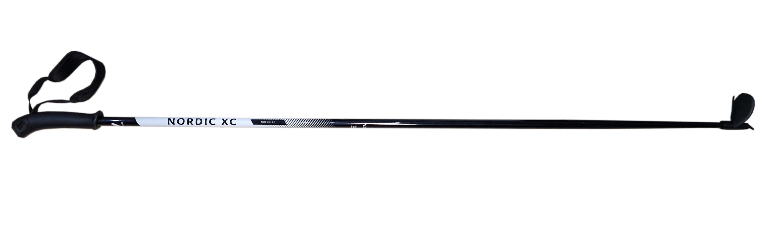 Turistické hole NORDIC XC vyrobené z odolné slitiny hliníku AW 50-83. Plastové madlo s turistickým poutkem. Talířek vhodný i do neupraveného terénu. Délky: 135 – 165 cm Barva: černá / bílá